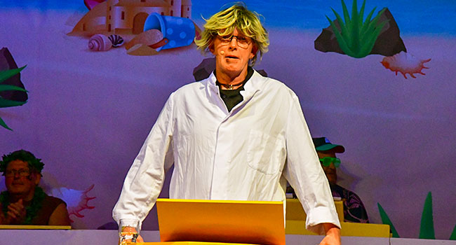 Klaus „Bim“ Rieth, bekannt als Mann im weißen Kittel, punktete mit Wortwitz und überraschenden Pointen. Seine humorvollen Ausführungen trafen genau den Nerv des Publikums.