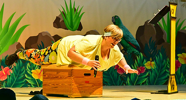 Sportlich und humorvoll zugleich präsentierte sich Stefanie Bien, vor der keine Trendsportart sicher ist. Mit viel Bewegung und originellen Einfällen wurde ihre Darbietung zum echten „Strike“ und sorgte für zahlreiche Lacher im Saal.